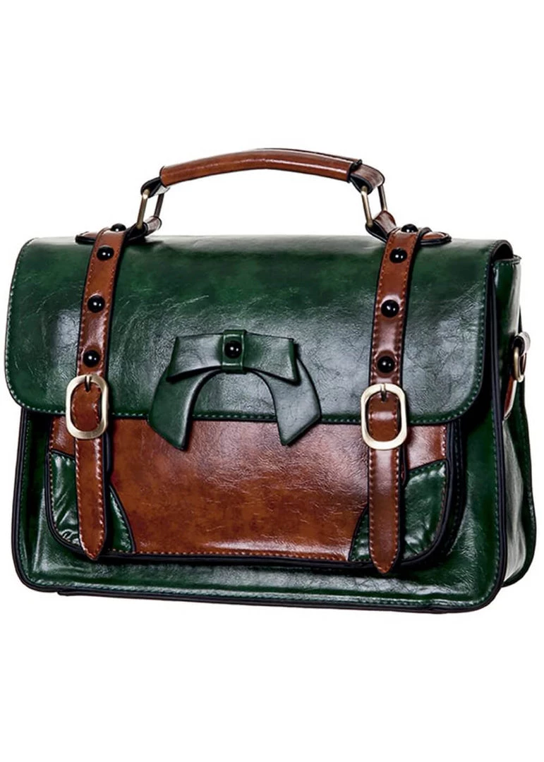 The perfect mix between classy and playful, with her stunning quality of stable faux-leather, that keeps its shape nicely, and the charming bow! The flap closes over an open compartment, with magnetic pushbuttons underneath the buckles. On the inside, there are 3 compartments, one of which closes with a zipper. Plenty of space for a small bottle of water, a small wallet and all your essentials!