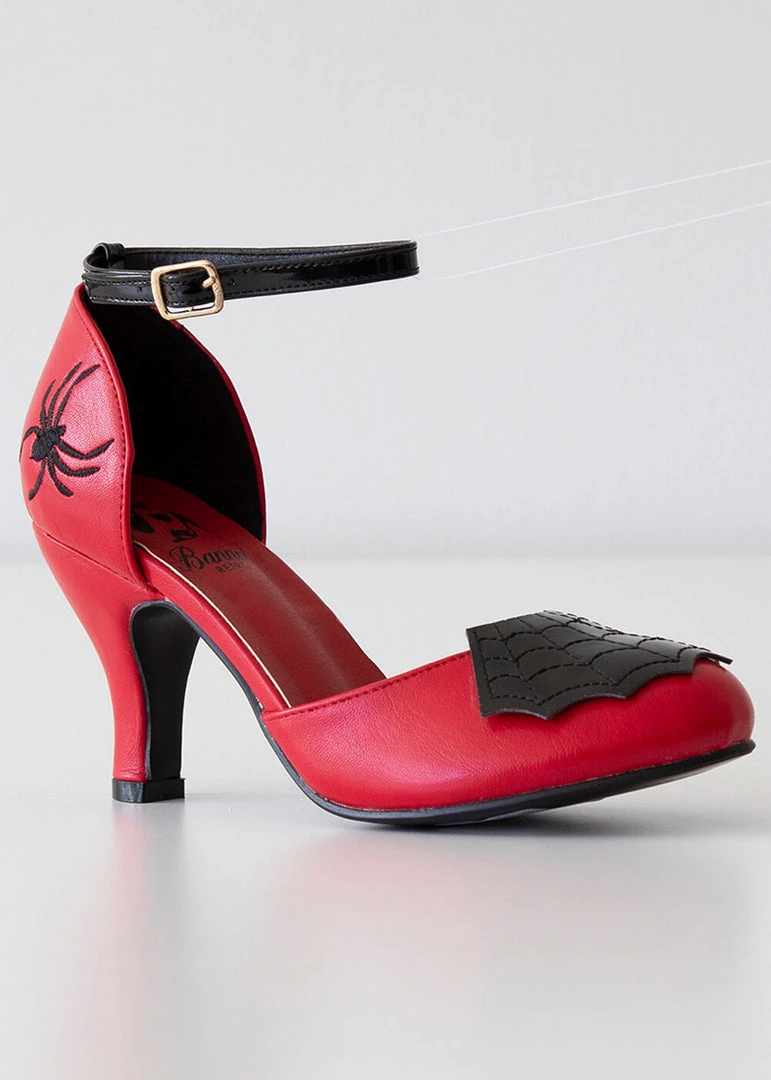Banned Femme Fatale Spiderweb 50’s Pumps Red