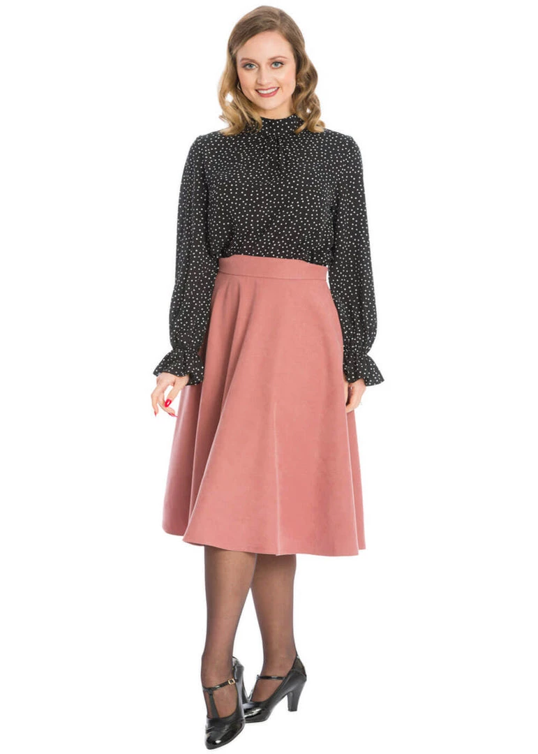 This high waist model is made of a gorgeously flowing, smooth fabric that looks like faux-suede without stretch. So no frippery, which lets you combine endlessly, from elegant blouses to turtlenecks and cozy cardigans… She closes with a zipper in the back and for a height of 1.70 m, she ends around or just below the knees. And yes, she has pockets!
