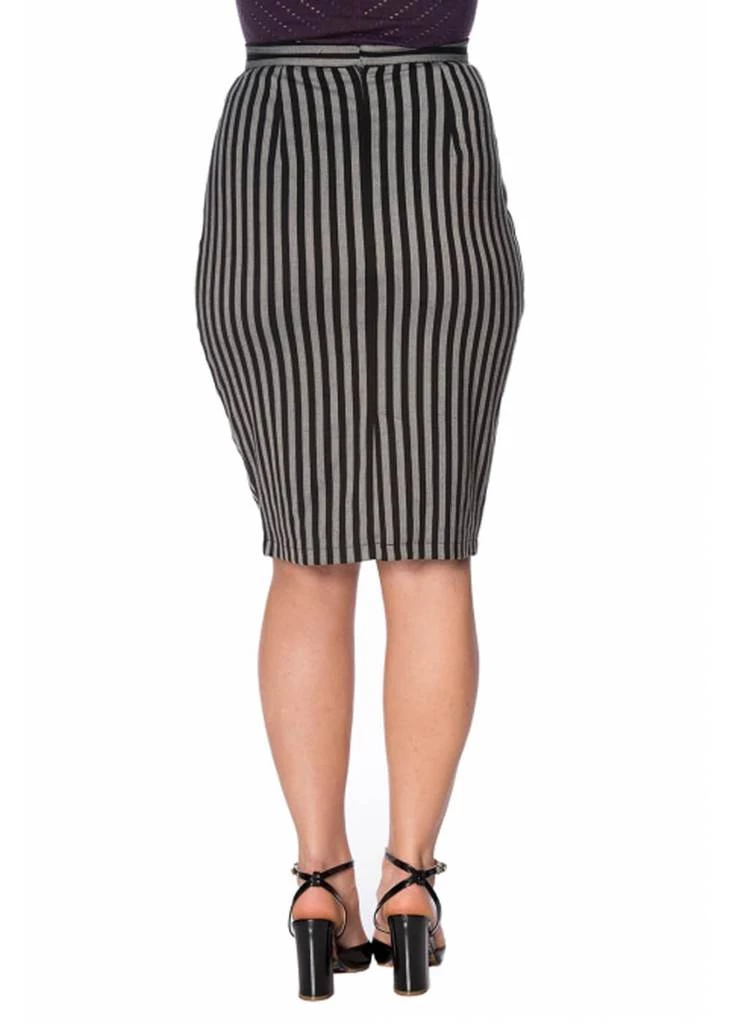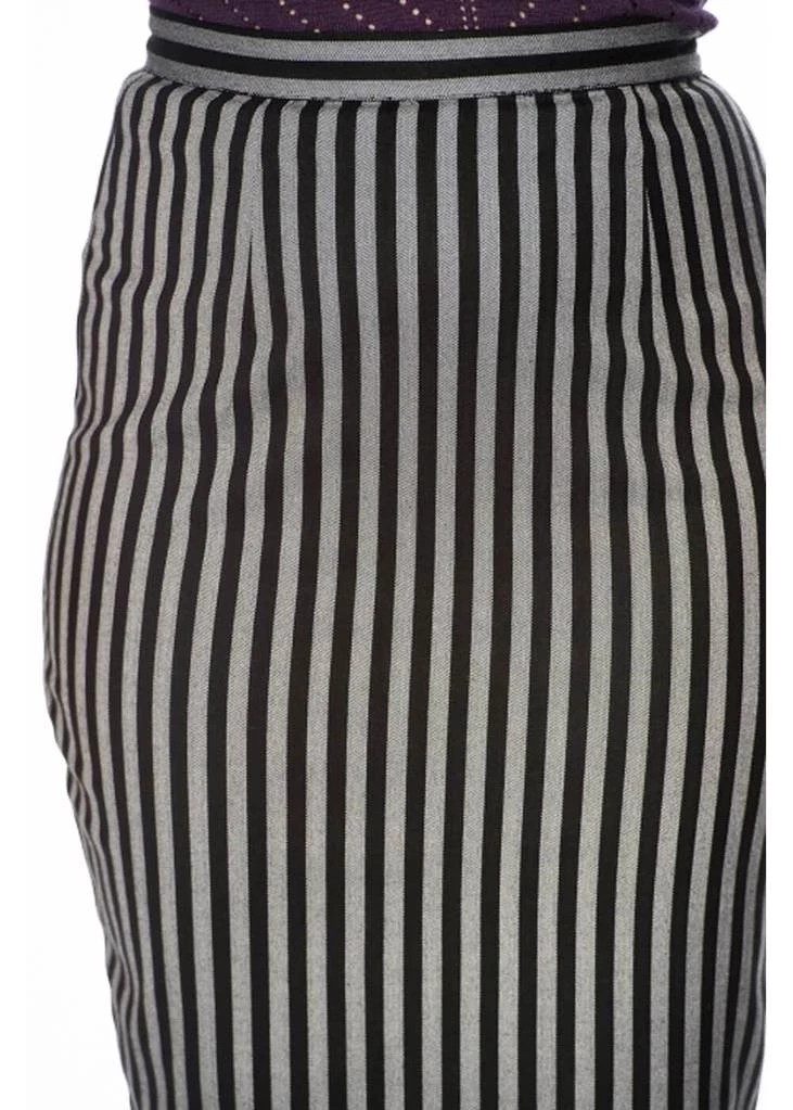 Not only do the grey and black lines deliver a killer-look, they also have a chic herringbone motive. Come on through with those curves! Because of her slight stretch and attached underskirt she’s gorgeously formfitting and has a slit on the back, where she also closes with a zipper. With a height of 1,70 she reaches down to the knee.