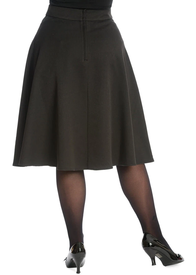 This high waist model is made of a smooth fabric without stretch, that flares elegantly from the waist and for a height of 1.70m ends around the knees. It closes with a zipper in the back.