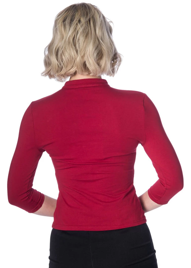 This stunning top is one you’ll want to wear with everything, she has a playful keyhole and a sweet button. Her collar can elegantly stand up straight for a classy chic fit. She is long enough to be worn with normal trousers, but ofcourse she looks super cute with some high waist trousers or a high waist skirt!