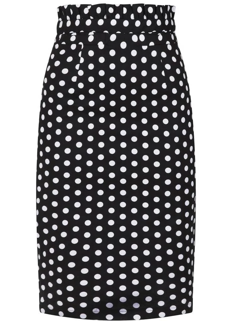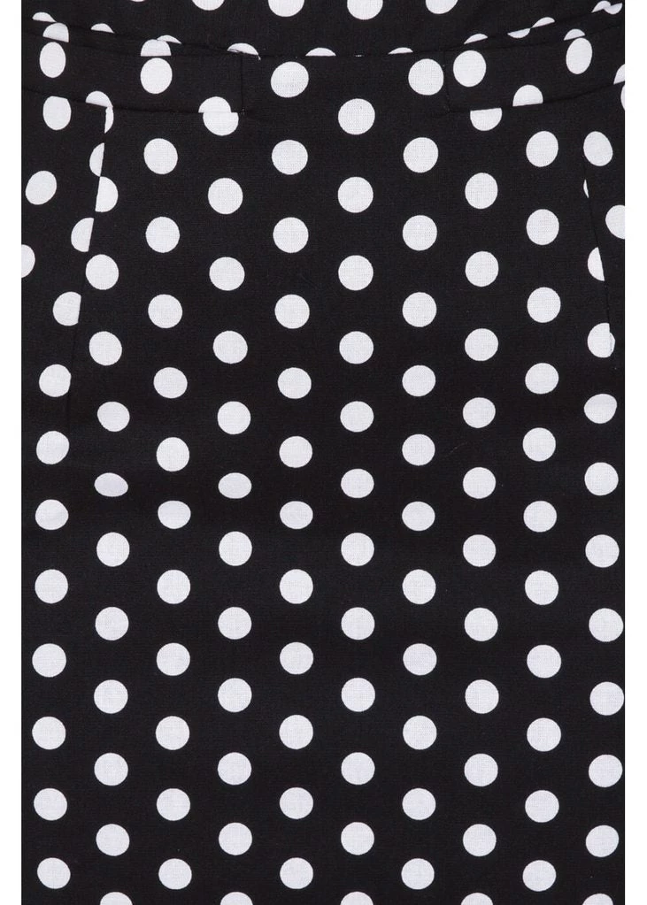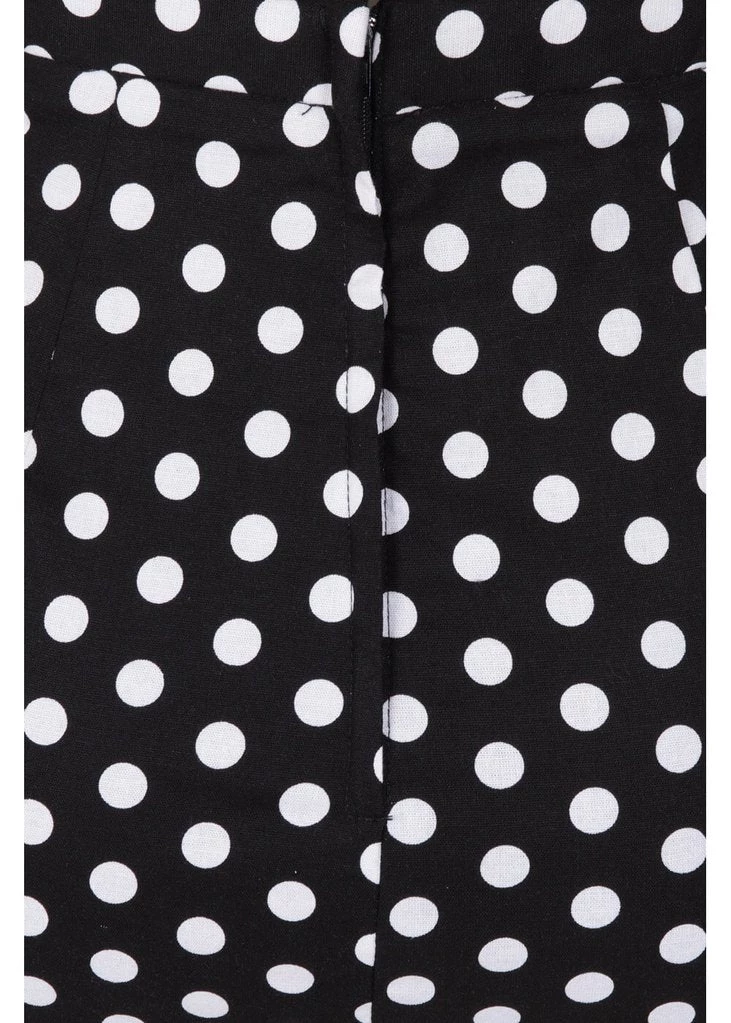 You didn’t know you needed it: a ruffled edge that sticks out above the waistband! Flirty and sexy, the perfect match for those playful polkadots. She’s made of a beautiful quality cotton-mix with a slight stretch and has figure seams, making her gorgeously formfitting. With a height of 1,70 she reaches down to the knee and closes with a zipper on the back where she also has a slit.