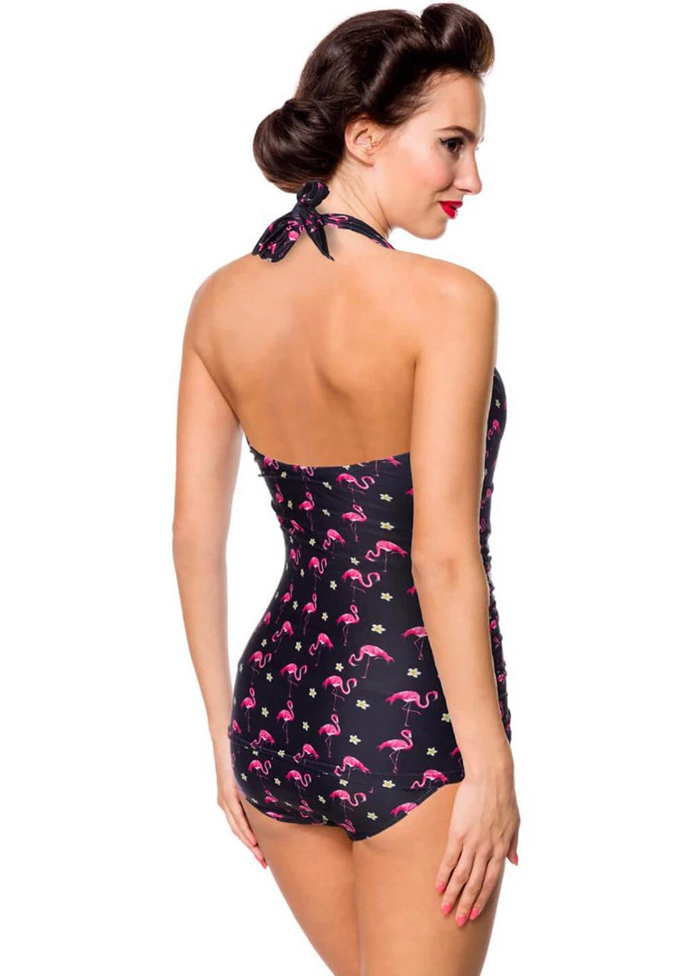 Aren’t flamingos the perfect print for summer? This beauty has pre-shaped padded cups with underwire, thes traps are tied in the neck. The elastic in the back and the leg holes keep everything nicely in place. Thanks to the stretch, she is a dream to wear, whether you’re stealing the spotlights in the water or relaxed on a towel!