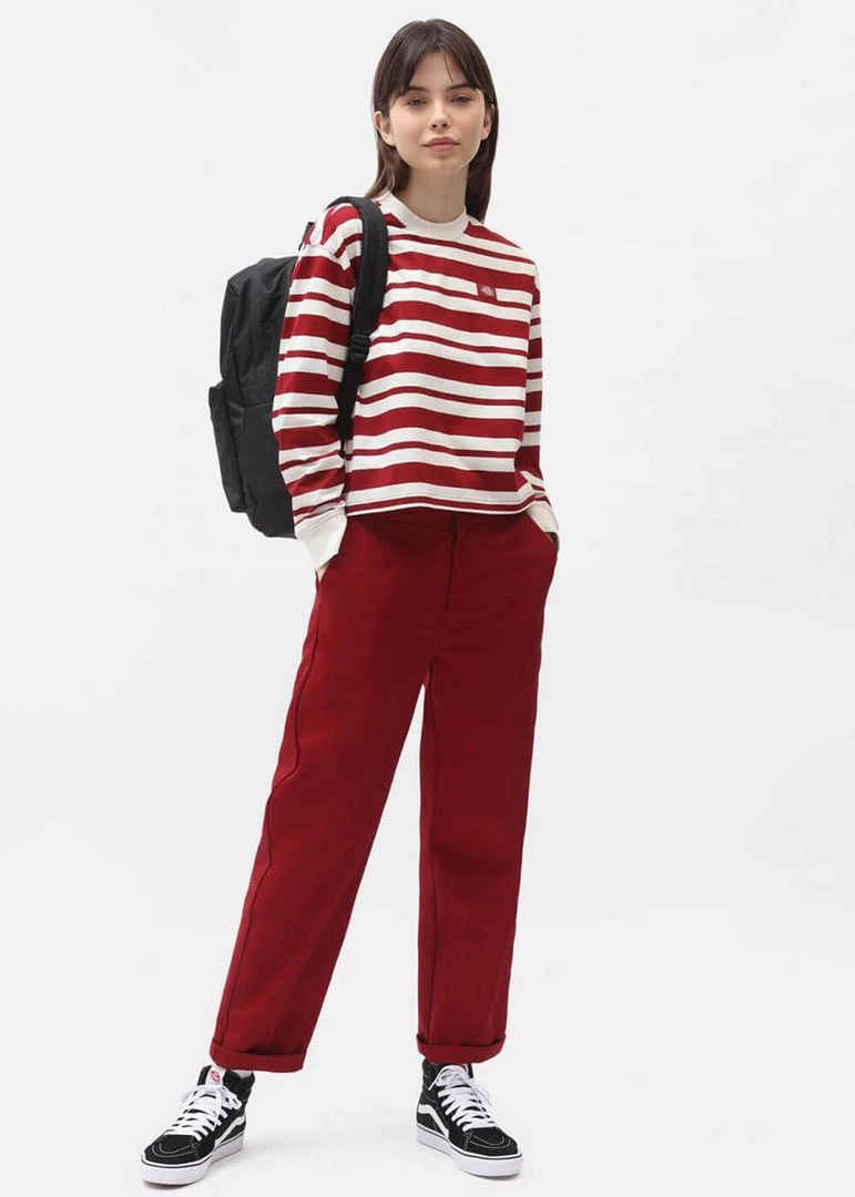 The trousers by Dickies are iconic, so we demanded a version for ladies 😉 Made of a firm cotton/polyester mix and with her regular fit she has the looks of smart trousers while having the durability of jeans. She has a waistband with wide belt loops, down through wide trouser legs she continues down into a foldable edge at the bottom. Apart from her normal pockets she also has 2 back pockets and closes on the front with a zipper and hook.