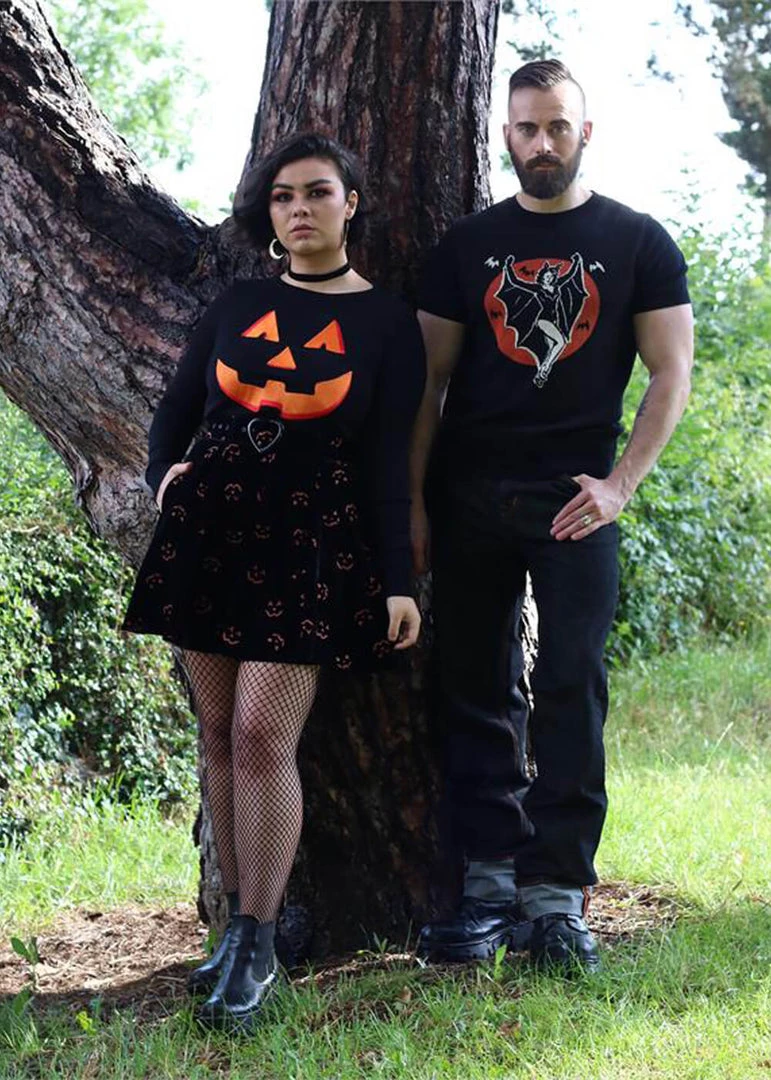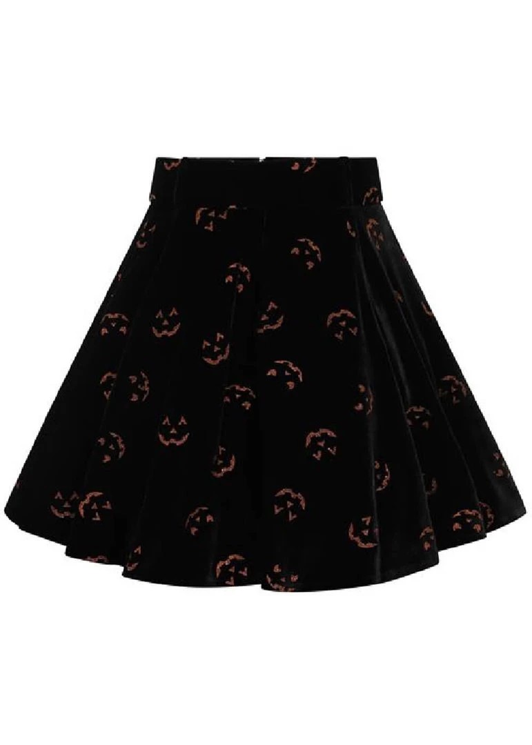 No Spooky-Girl can resist this gem with pitchblack velvet, covered in glitter-pumpkins…
