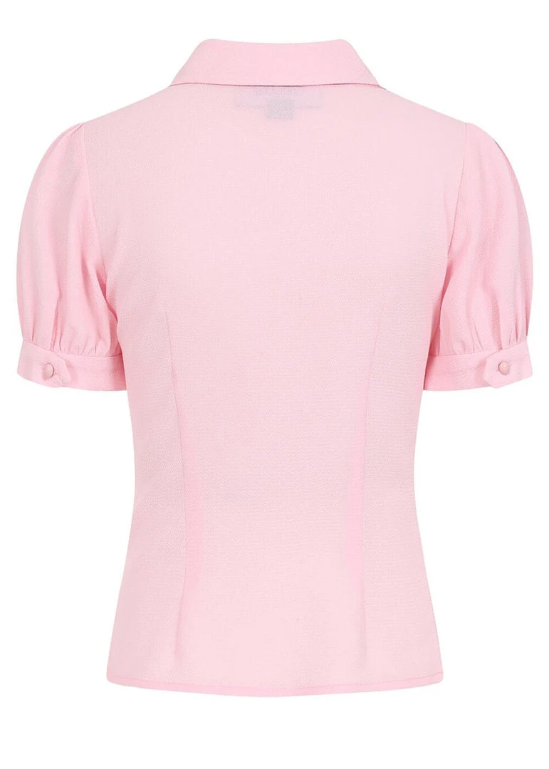 Her sleeves are slightly puffy because of the pleats on the shoulder and at the cuffs, and her figure seams ensure a gorgeous fit. She closes with a row of smooth buttons on the front. She’s long enough to be worn with a pair of modern trousers, but will look perfect with a high waist skirt or trousers!