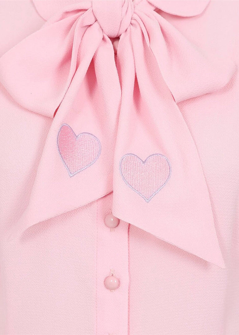 She instantly embraces you, made of a smooth fabric that feels like chiffon without stretch. Her high neckline and pussy-bow (Did you see the hearts?) give this 40’s cutie a playful vibe.