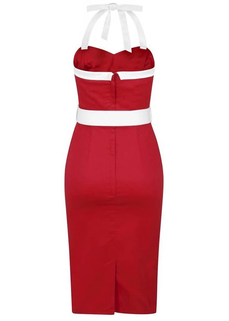 Georgie has everything our inner pin-up dreams of: The red colour, white details…ship ahoy! Her sweetheart neckline and figureseams add a Vavavoom fit, and it can turn even more summery: the halterstraps are detachable. Her gorgeous quality cotton-mix has a slight stretch, making sure you don’t need a boat ride to let this beauty shine.