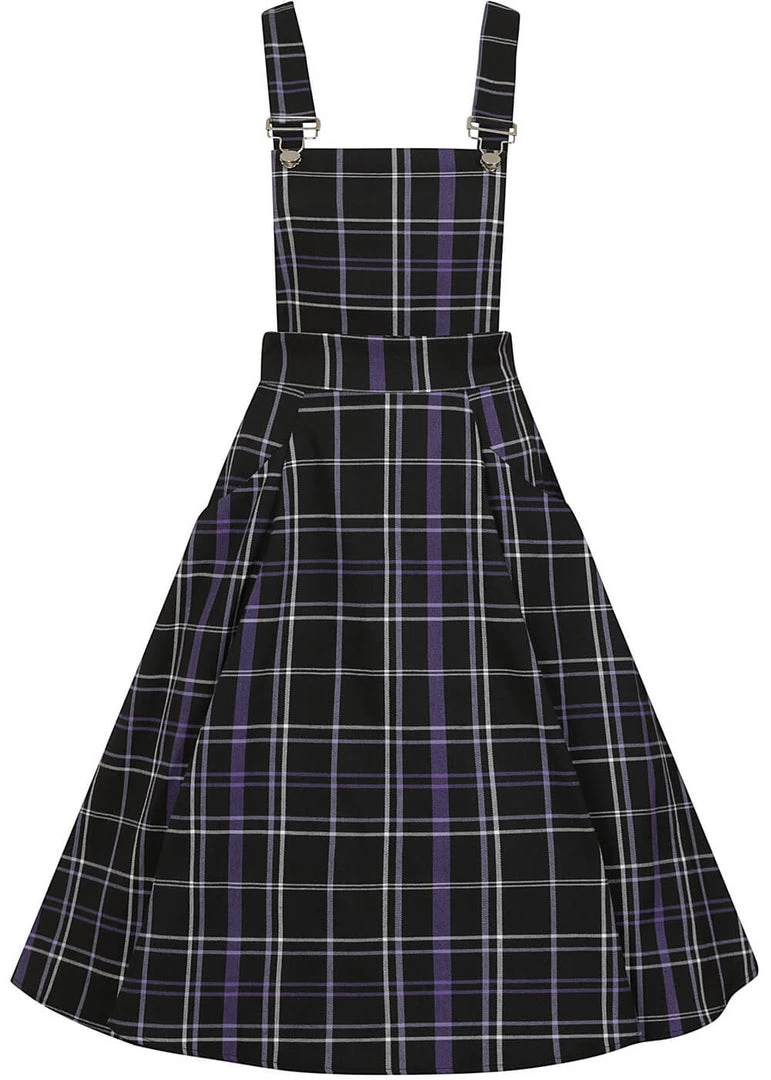 Collectif Kayden Nancy Check Overalls 60’s Swing Dress Black