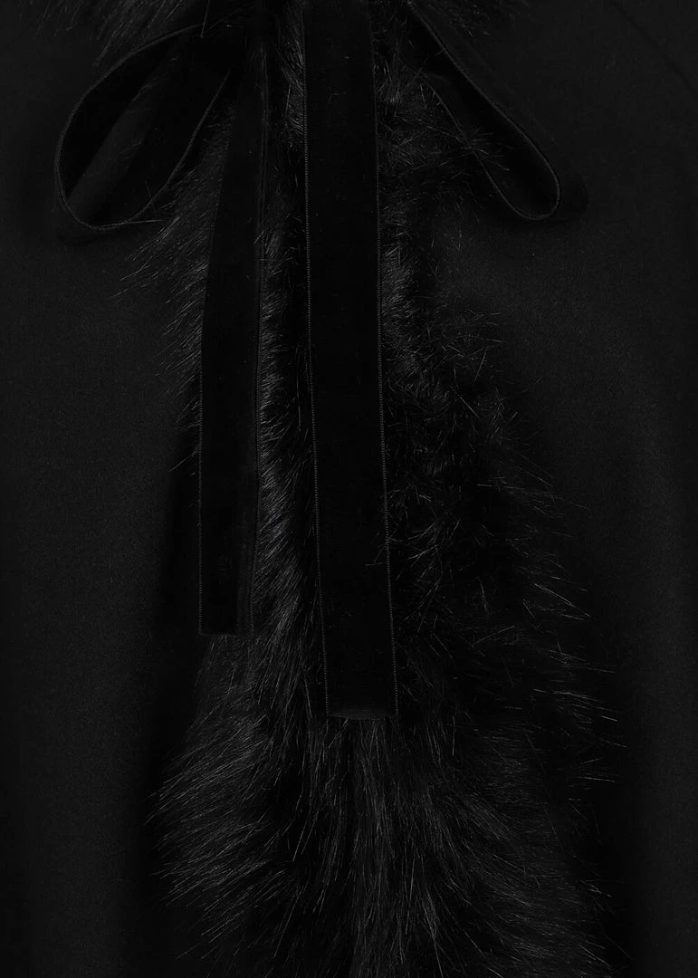 Materials: 60% wool – 40% polyester. Lining: 97% polyester – 3% elastane. Faux-fur: 100% polyester. Washing instructions: Dry cleaning only