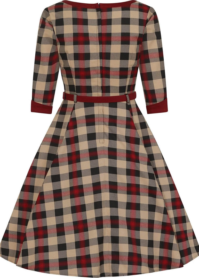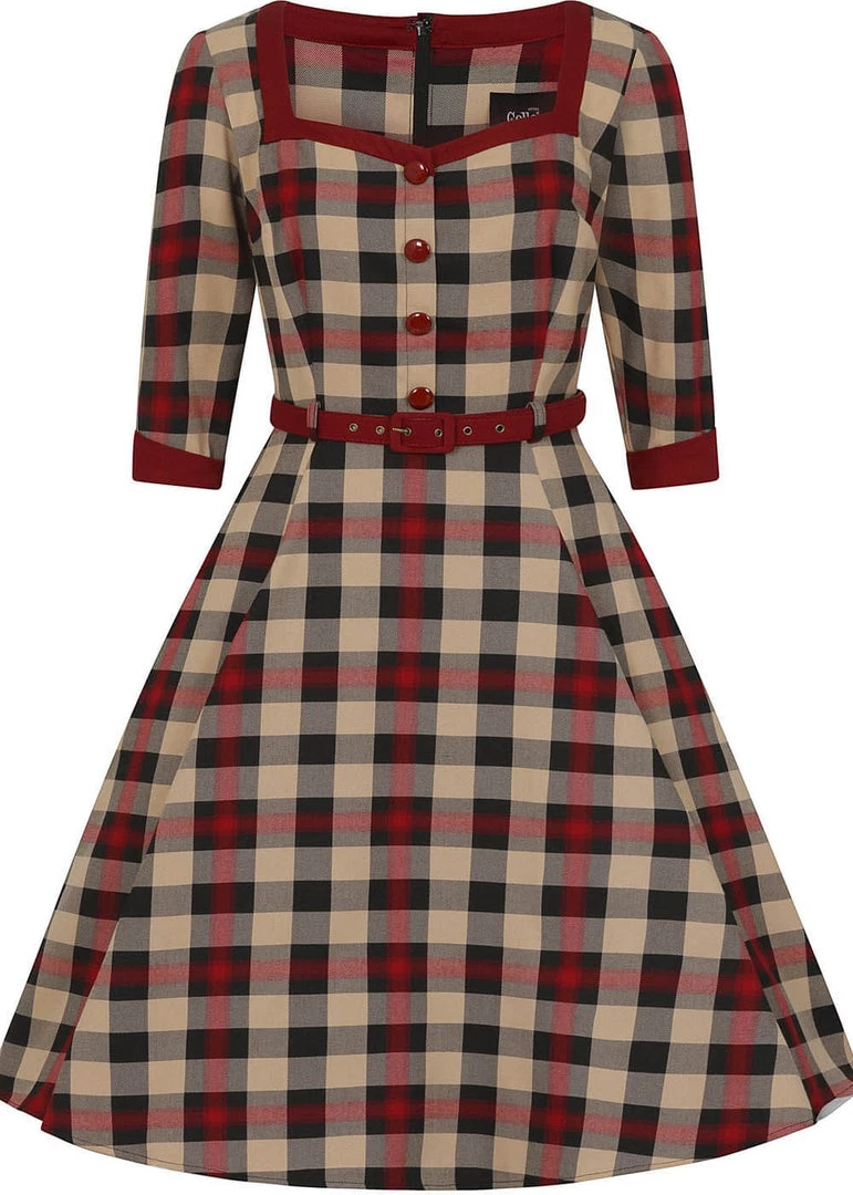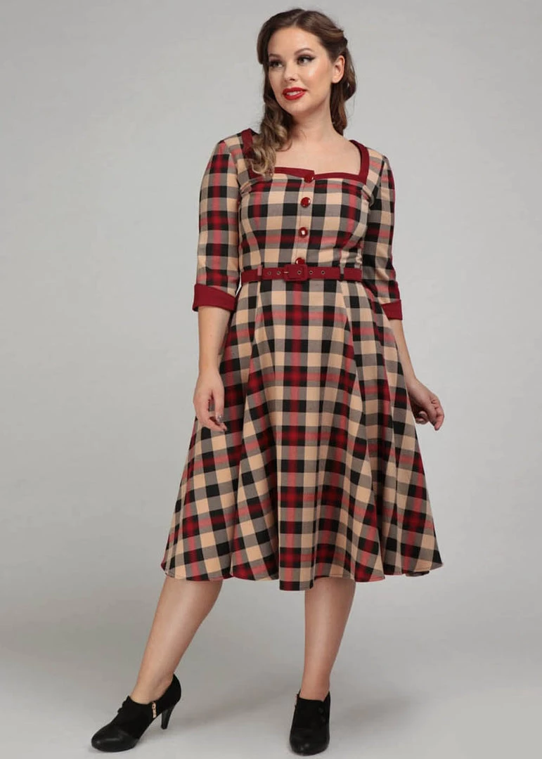 The waist is accentuated by the removable belt, before she flares into a full skirt with pockets and ends below the knees for a height of 1.70m. Gorgeous with one of our petticoats for an extra festive vintage look.