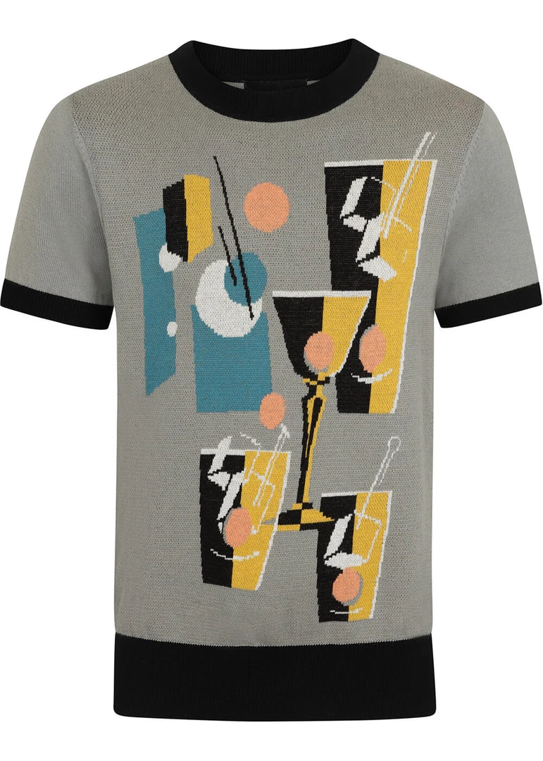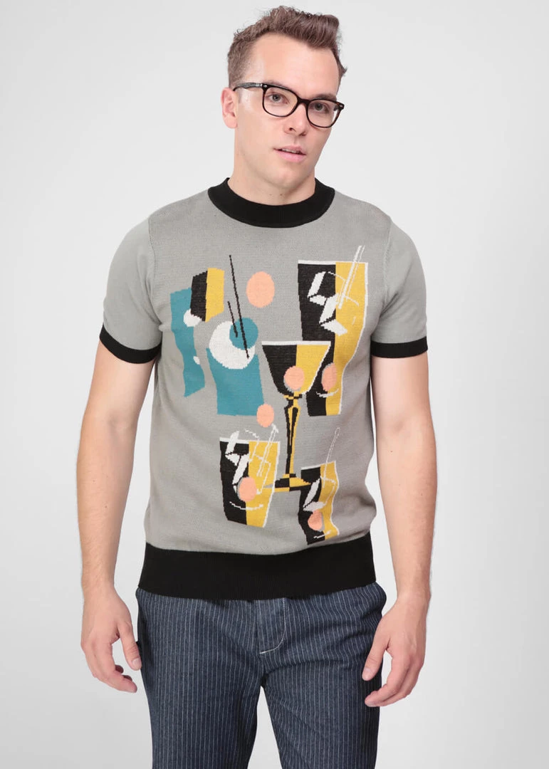 Collectif Men Scott Cocktail Hour Knitted 50’s Top Grey