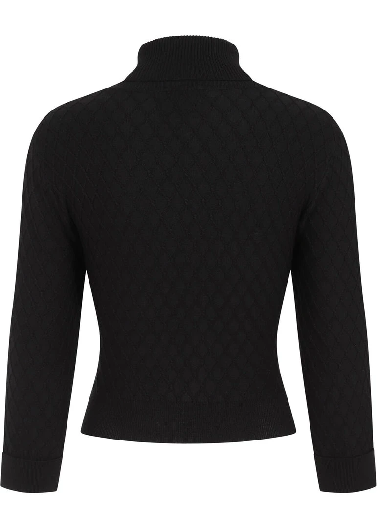 Her high rolled turtleneck and 3/4 sleeves help you stay cozy and warm, while her soft stretchy
