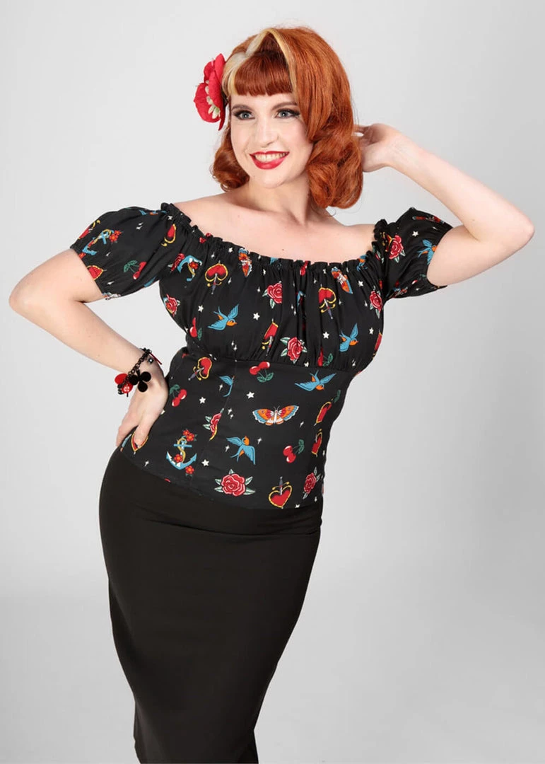 Add some hair flowers and let the wind blow through your hair, Viviana is the perfect pin-up top!