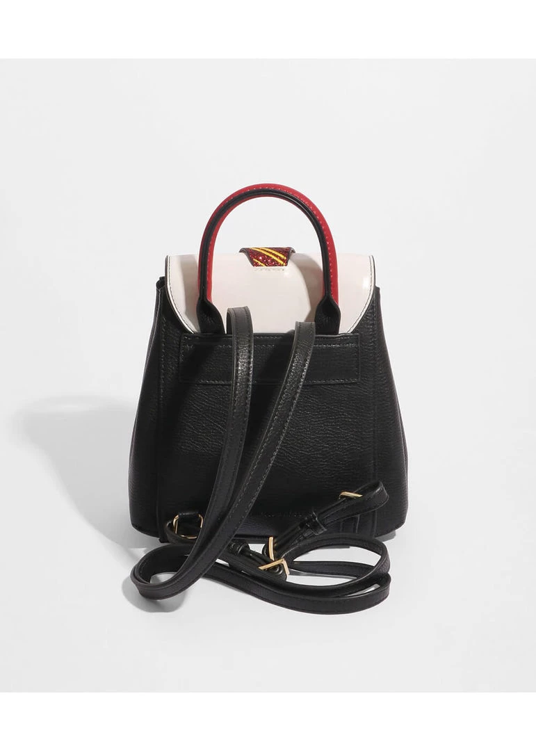 The emblem proudly shines on the front of this stylish backpack, which is like school uniform: complete with metallic tie.