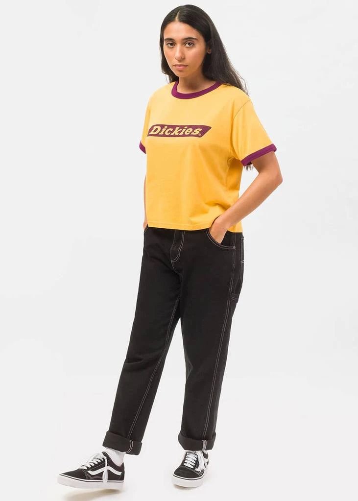Quality can be seen all throughout the Dickies collection and t-shirts are no exeption! Her just a tad shorter length gives her a sporty look, which you can also wear with a pencil skirt for an extraordinary look. This ladies t-shirt has a relaxed, not formfitting fit and is made of 100% cotton with a slight stretch to ensure ultimate comfort when wearing. The Dickies label on the bottom can’t lack ofcourse.