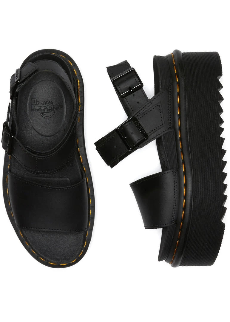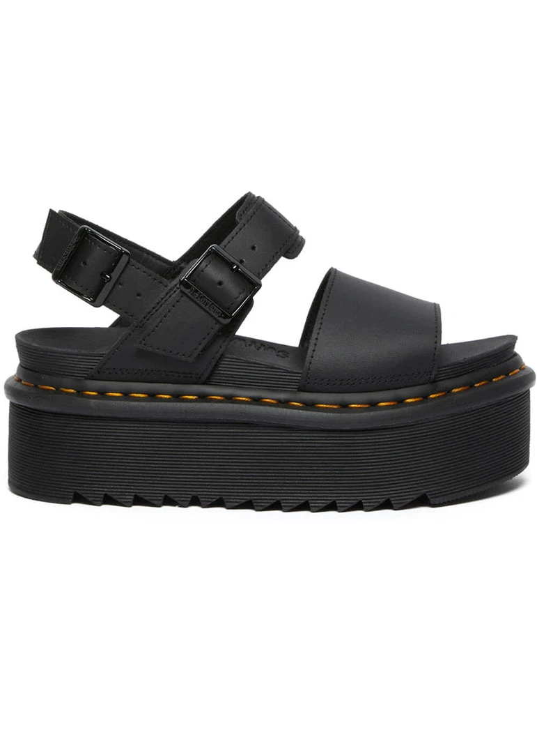 We keep wearing our 1460’s without batting an eye even during a heatwave, but a good pair of sandals like Voss makes things a whole lot….cooler 😉 These extraordinary lighweight sandals are nicely open with the wide straps, and high platform-soles (with even another elevation on them!), yet they’re unmistakably Docs with the yellow stitchings. They’re made of fine leather and super soft to wear. The last strap is adjustable.