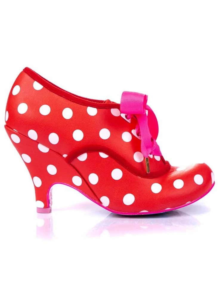 The polkadots can’t be missed, but have you noticed that continues 9,5 cm heel? Woah! She’s made of a beautiful quality faux leather on which the colours are incredibly striking.