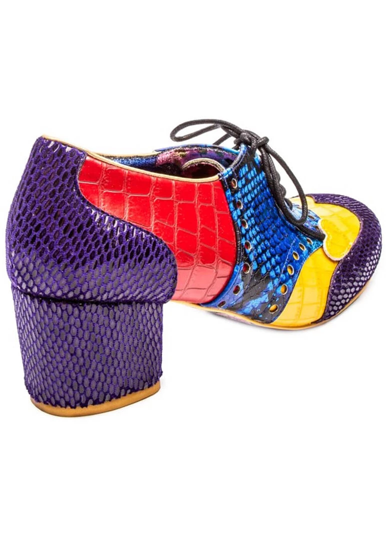 Clara Bow is a fun explosion, with her stunning faux-leather in so many bright colours and the exciting mix of textures! Her block heel of 5,5 cm is a joy to the eyes with its 60’s happy colour, and to the feet as well, thanks to the soft footbed. She closes with the lace, that is lovingly adorned with little hearts.