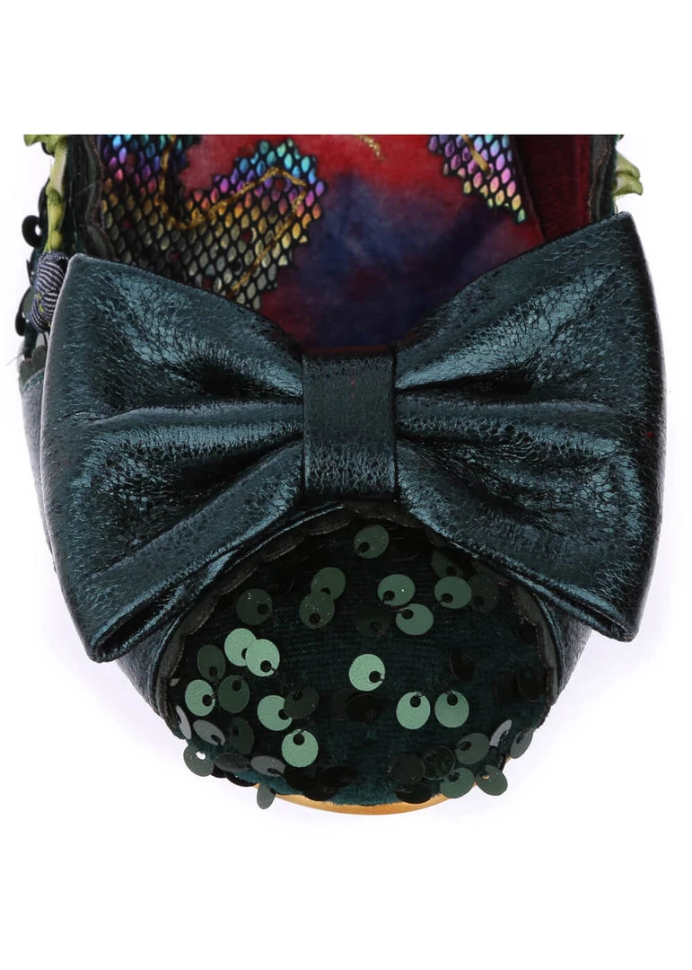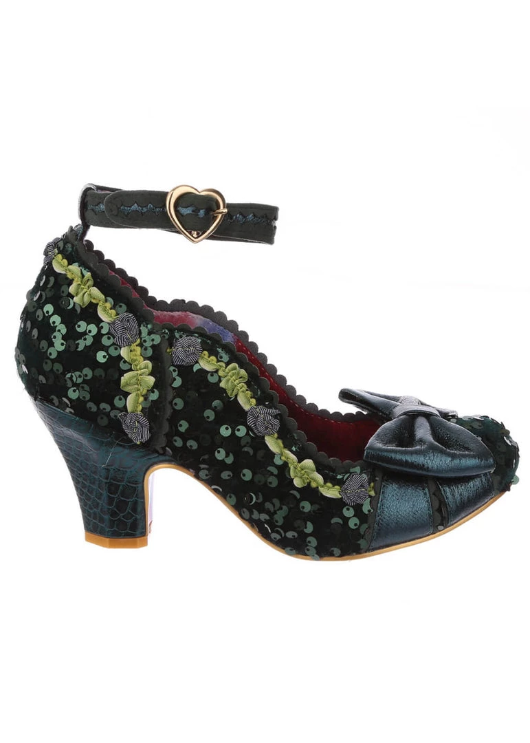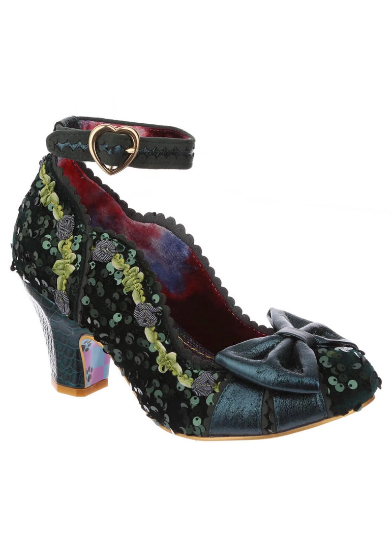 These literally sparkling pumps are covered with shiny sequins, which form the bed for the 3-D roses. Even the ankle strap is adorned with a heart shaped buckle!