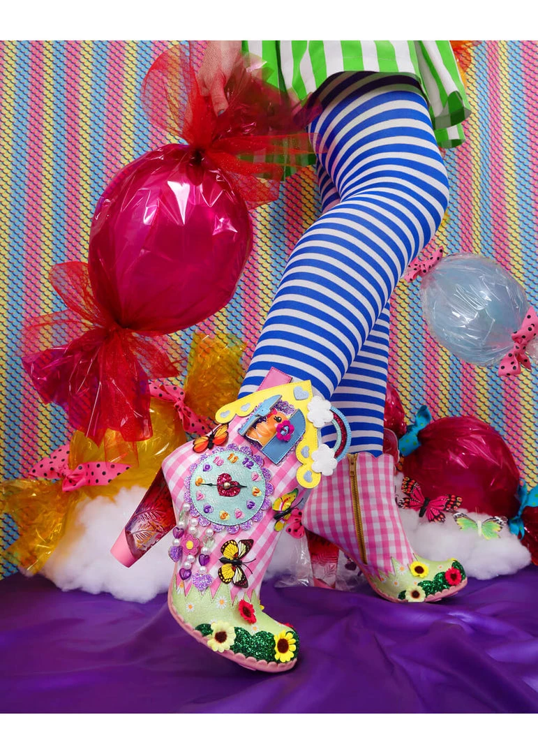 Irregular Choice Wakey Wakey Boots Pink New In