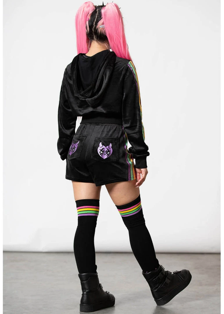 Killstar Coven Chill Rainbow Velour Hoodie Black
