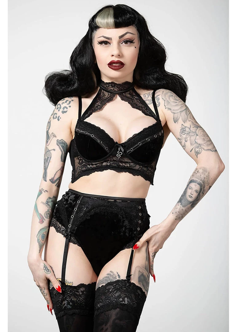 Killstar Mercy Lace Garter Belt Black