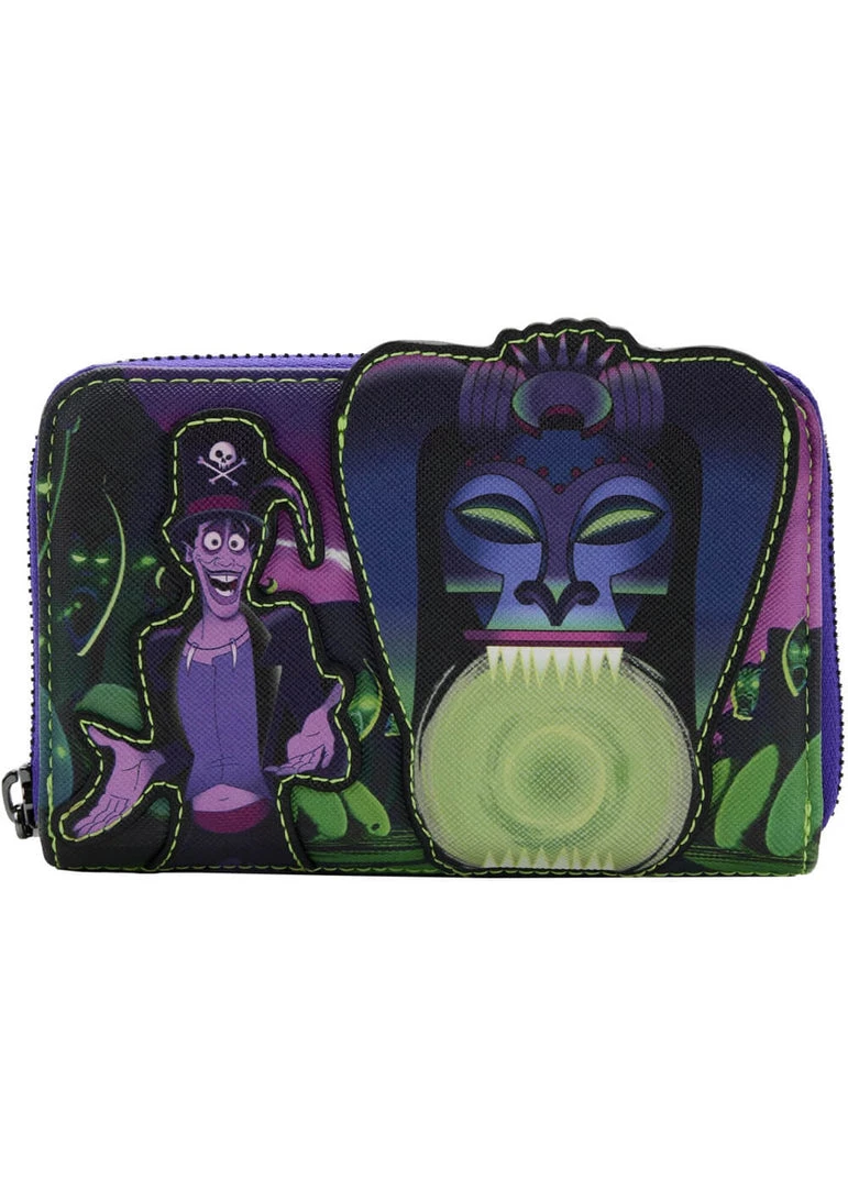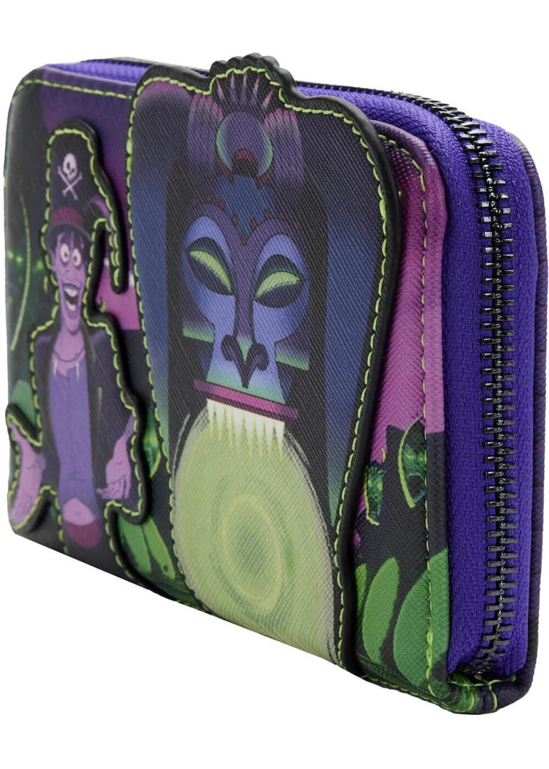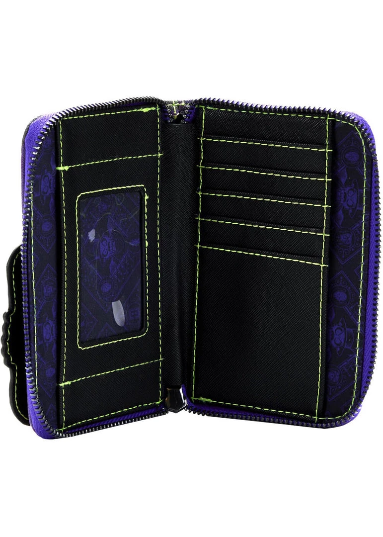 This wallet has room for 5 cards, a compartment for bills, no seperate space for zipper pocket for change, plus space for an ID or a picture. Her high quality faux-leather keeps its shape nicely and closes with a zipper all around.