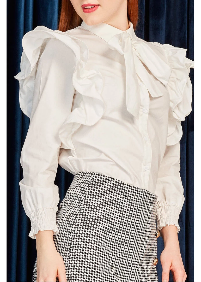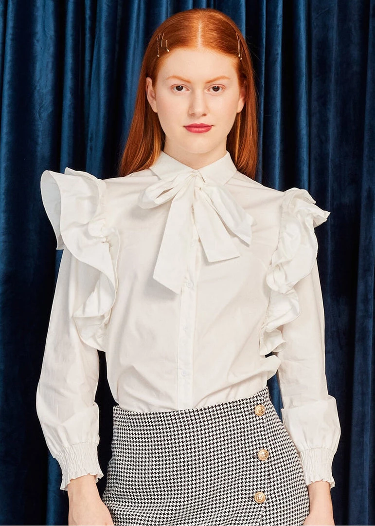 She is simple and special at the same time, with the big ruffles on the shoulders that almost reach the waist, smocked ends of the puffy long sleeves and the removable bow to tie yourself under the collar. Leslie is made of 100% cotton without stretch and closes with smooth buttons in the front.