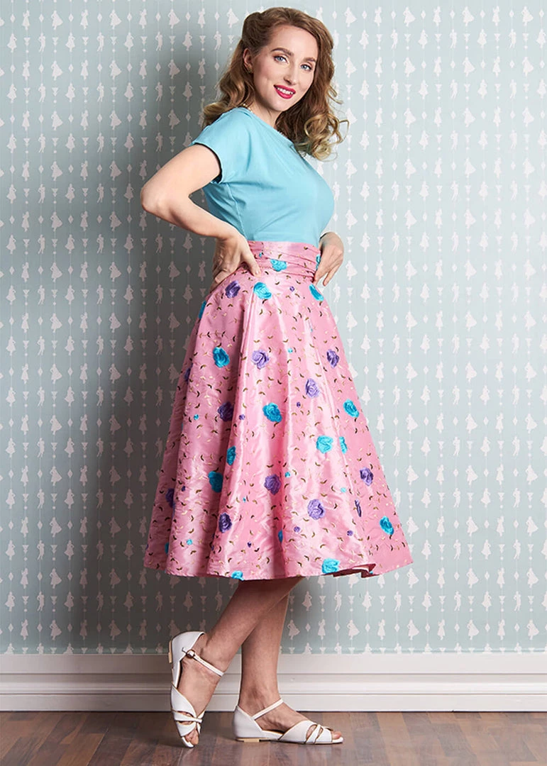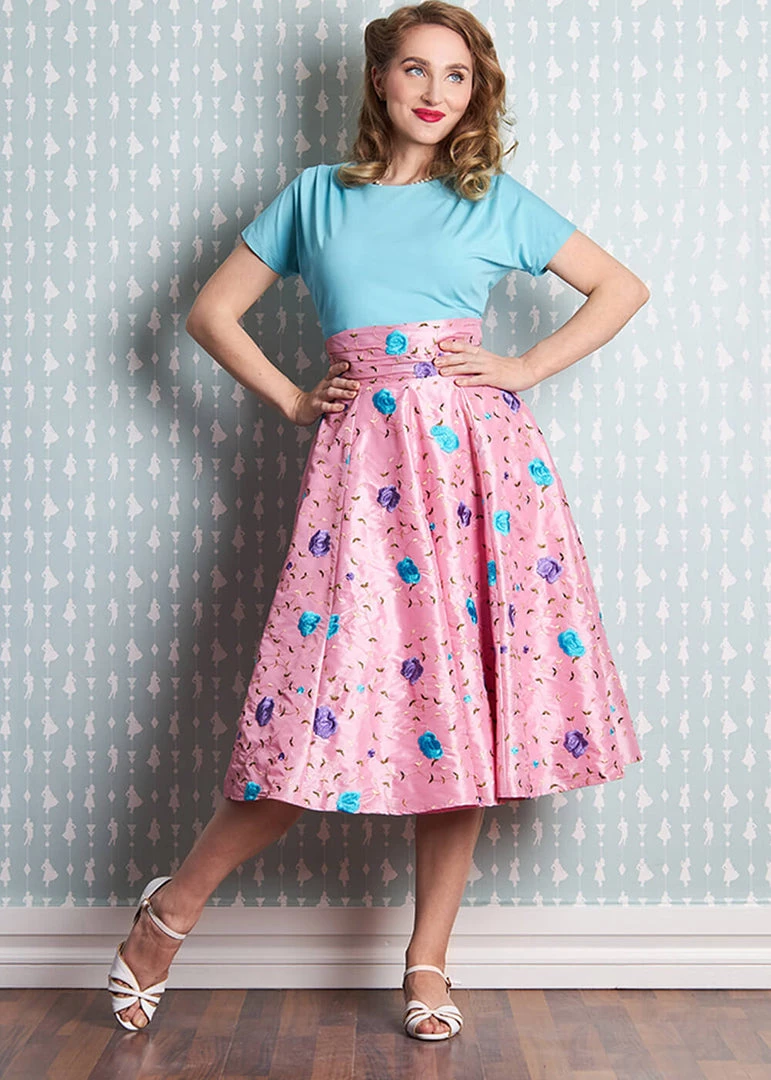 Fleur just walked right out of the 50’s! There is 0% stretch in the fabeic, so don’t order her too small.