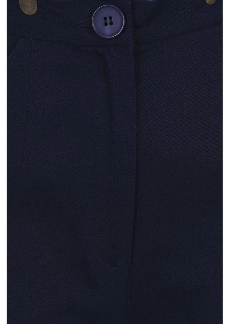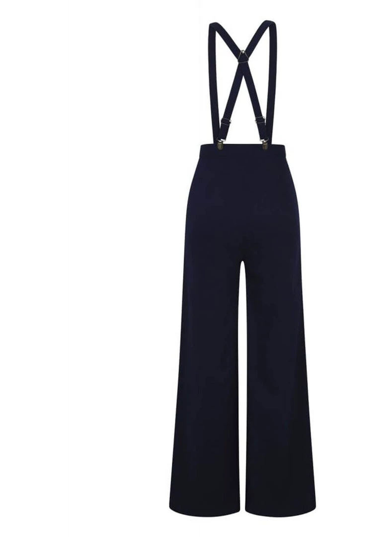 She is clearly inspired by fashion in the 40’s, with her navy coloured, soft viscose-mix with a nice stretch, but this model today is just as lovely with her waist band and wide trousers legs!