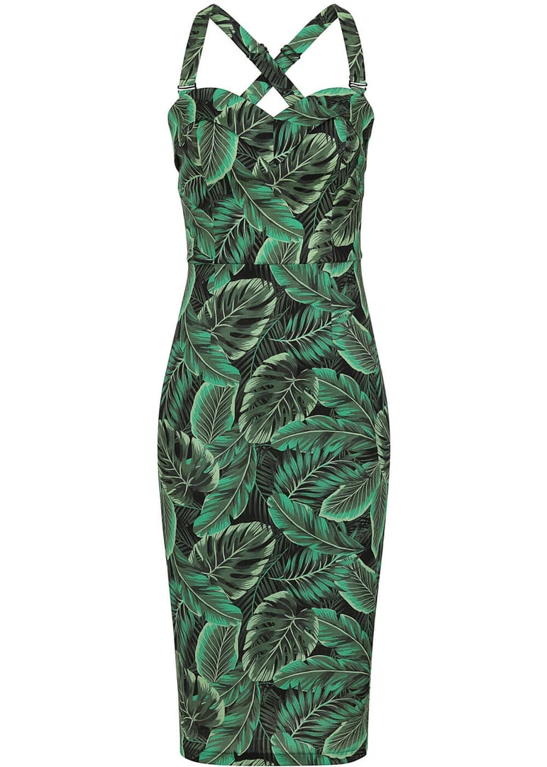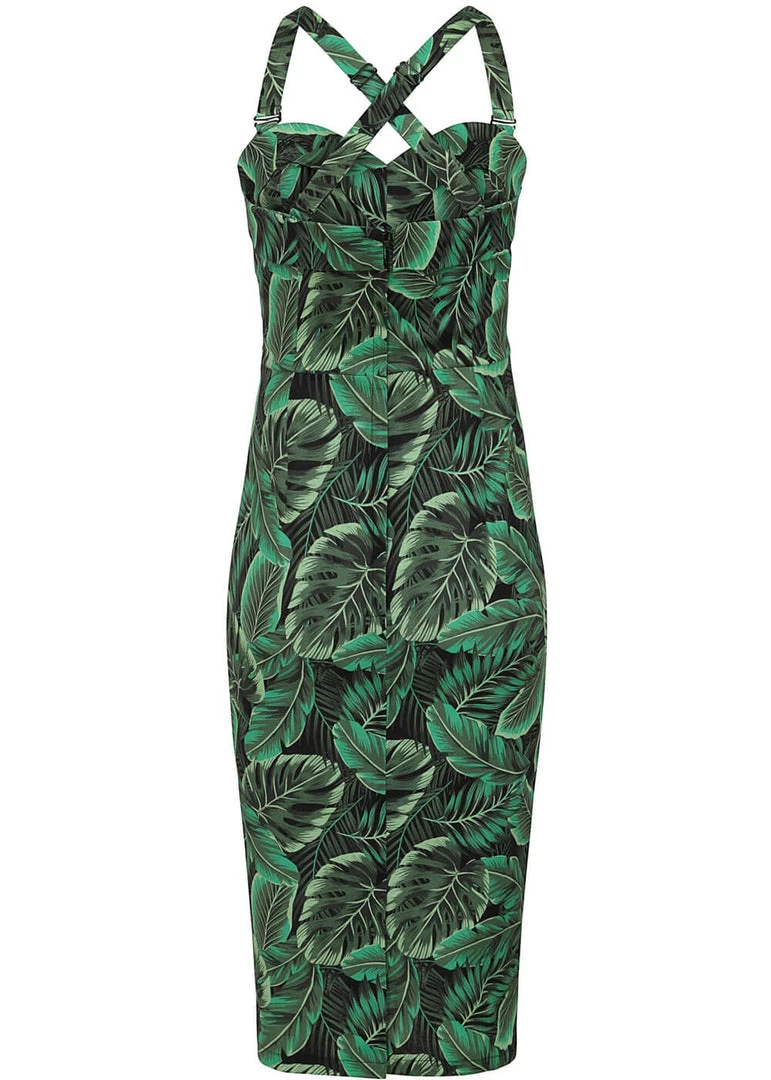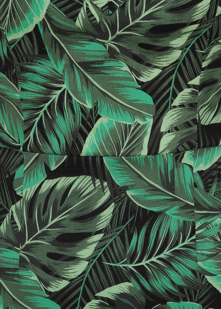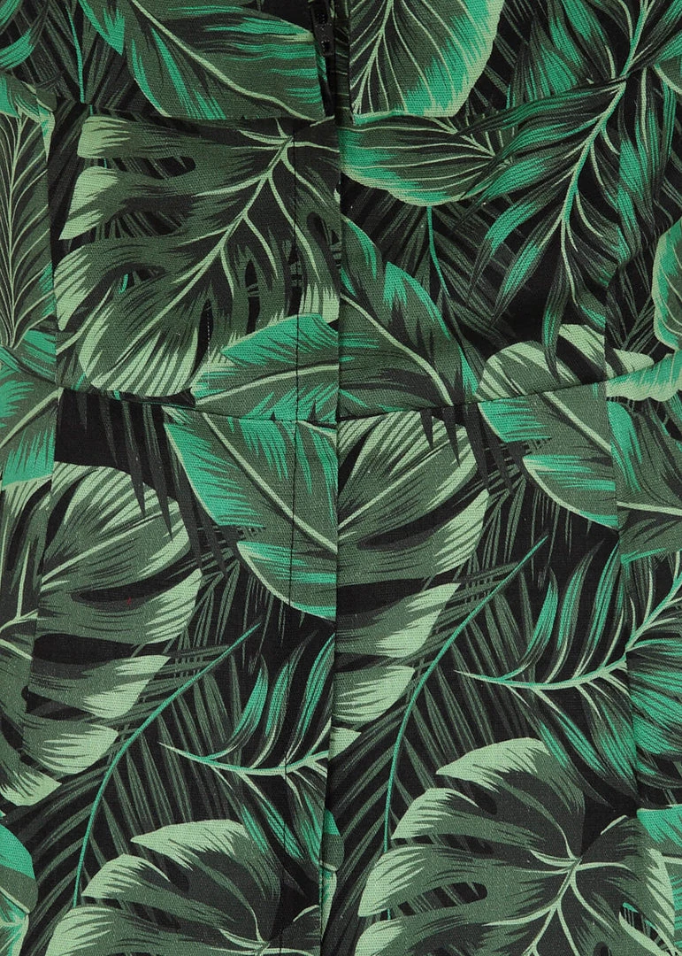 She is made of a beautiful lightweight cotton mix with a slight stretch and closes with a zipper and hook on the back. Just add some bamboo accessories to achieve that ultimate tiki look, and a cocktail 😉