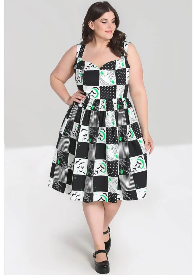 New In Hell Bunny Annie Bats 50’s Swing Dress Black White