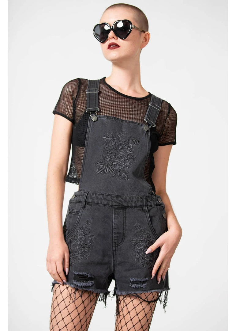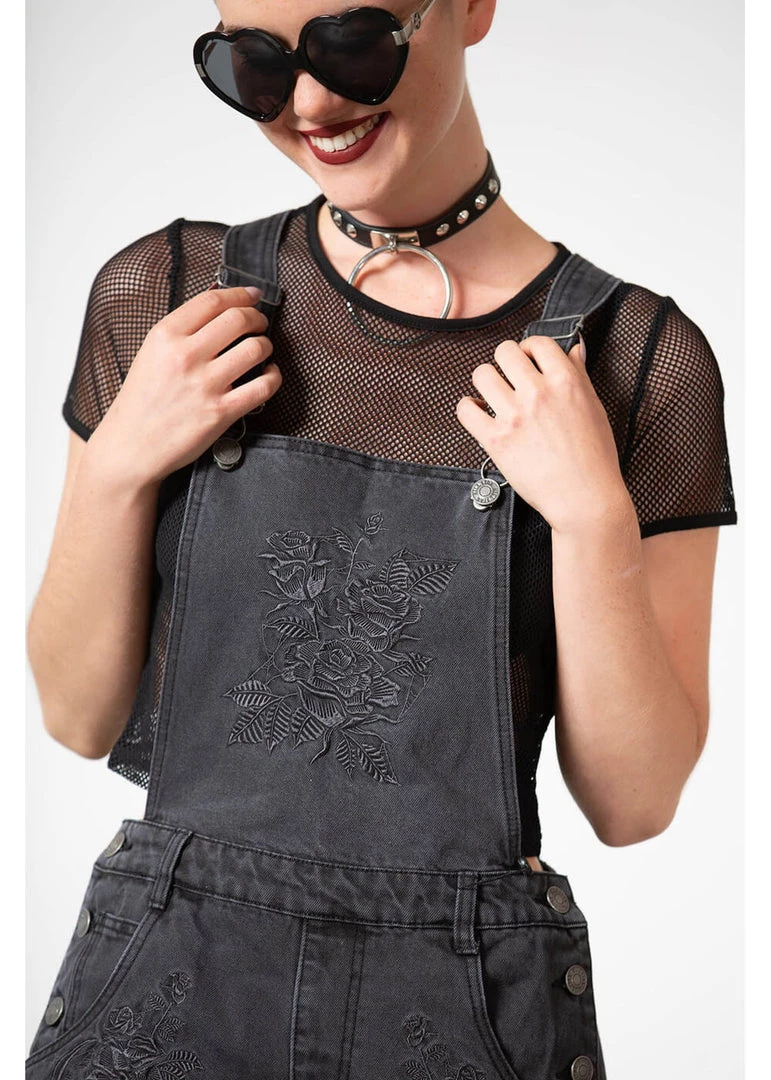 They’re romantically embroidered on the flap and the legs: roses! This beauty is made of denim-look cotton without stretch, that is lovely to wear. The flap is connected to the high back through adjustable shoulder straps.