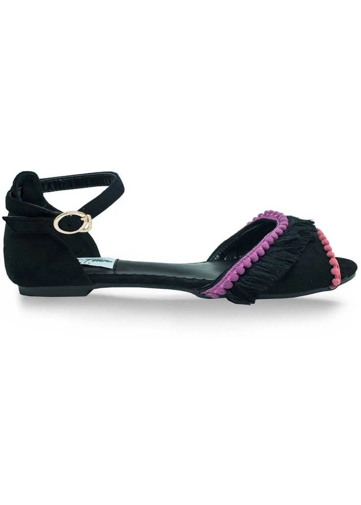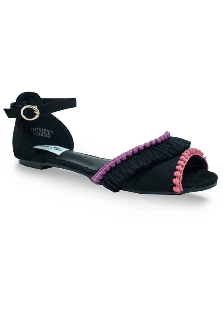 De Moria sandaal van Lulu Hun brengt ons pompoms en daar houden we van. De neus is vrolijk bedekt met pompoms en franje en ze heeft een verstelbaar enkelbandje, waarvan je het gespje één keer op de gewenste maat zet en vervolgens het haakje achter het gespje schuift. Super makkelijk! Ze heeft een licht gevormd voetbed voor extra comfort.