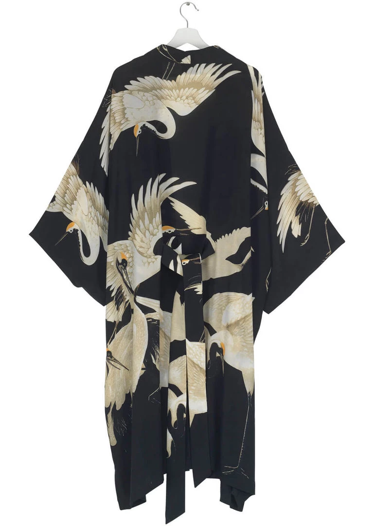 New In One Hundred Stars Stork Crepe Long Kimono Black