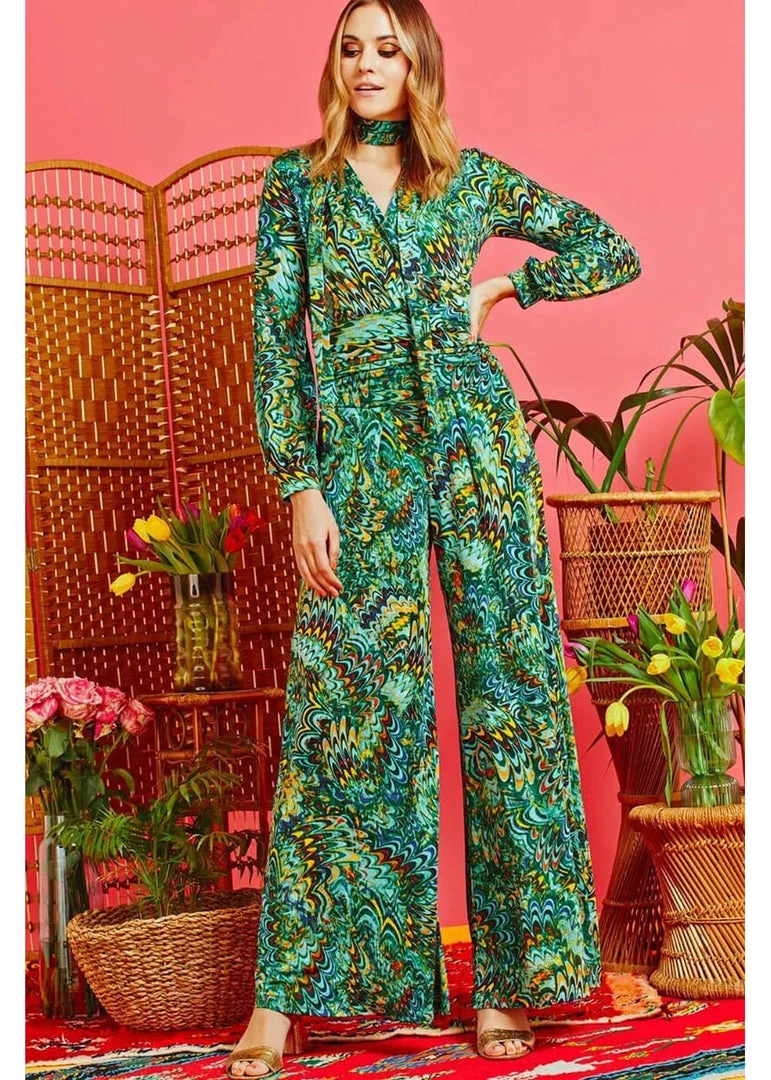 Be the first to review “New In Onjenu Sharon Bella 70’s Jumpsuit Green” Cancel reply