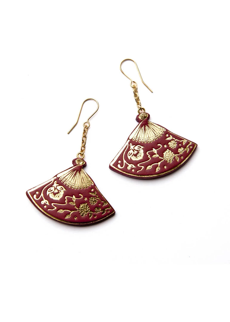 Designer Rowenna finds her inspiration in all corners of the world, for example in the Far East. These stunning earrings are an exotic addition to your look and, since their made of leather, they weigh almost nothing. The golden details on both sides are handpainted for a special touch.
