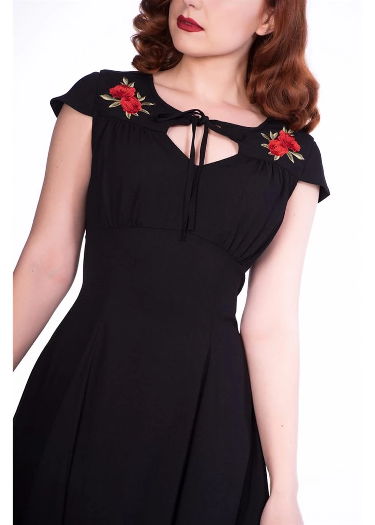 Whether it’s for a date, for at the office or because it’s tuesday, you dont need a reason for Juliana with her gorgeous embroidery, which looks extra sweet together with the peekaboo that occurs when you tie the ribbon. The bodice has small pleats on both the top and bottom, for a classy 40’s look.