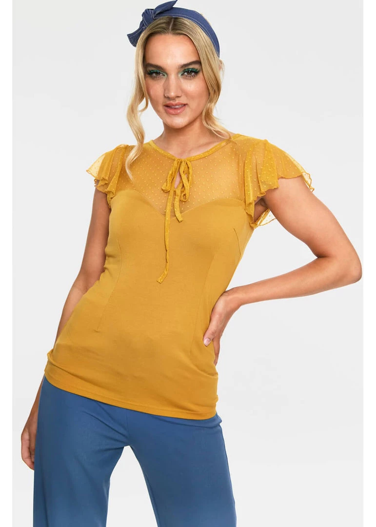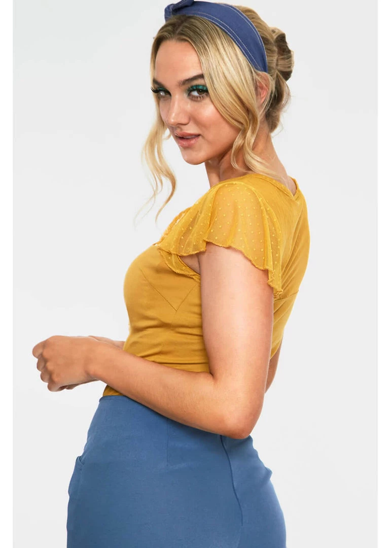 New In Voodoo Vixen Samantha Mesh 50’s Top Mustard