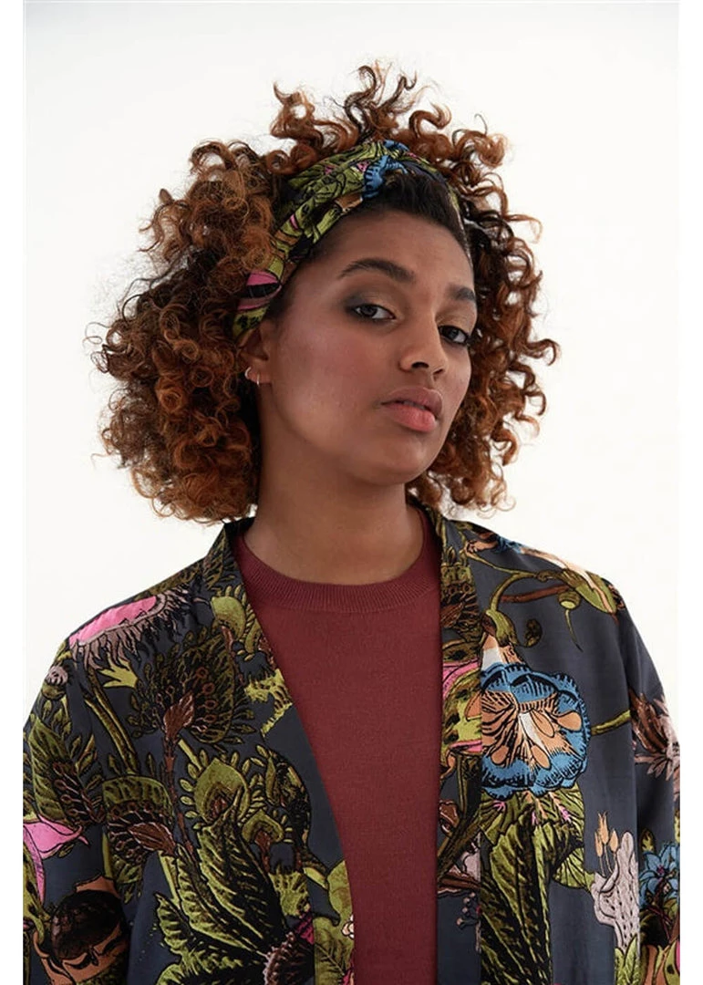 Her rolled-up half-long kimono sleeves are elegantly wide, for a chic look from the 20’s, 40’s or 70’s, depending on what you wear her with! So will it be the maxi or the pencil dress, jumpsuit or trousers with skinny or wide legs?