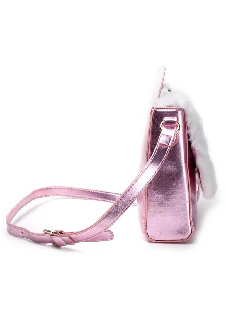 Of course, you’re doing that in style, with a fluffy Marie encouraging you with her embroidered face on the flap, that closes with a magnetic push-button! The rest is covered in shiny pink metallic.