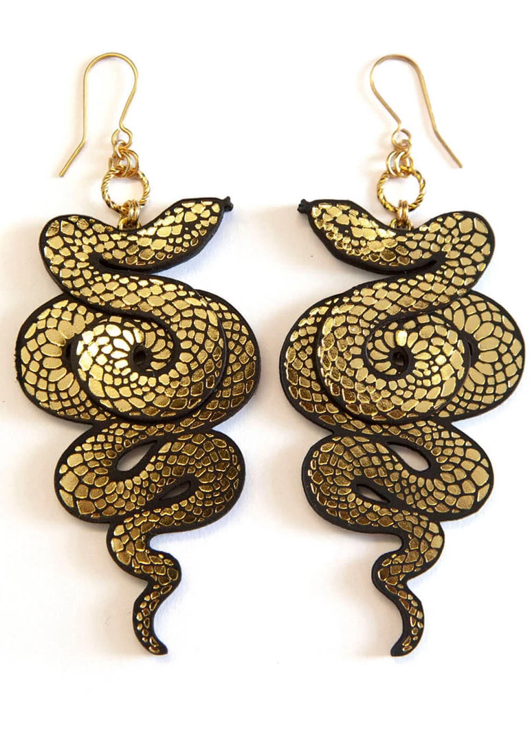 Designer Rowenna finds her inspiration in all corners of the world, for example deep in the jungle. With a length of 7,5 cm, these stunning earrings are anything but subtle and, since they’re made of leather, they weigh almost nothing. Both sides are handpainted, so they shine from afar.