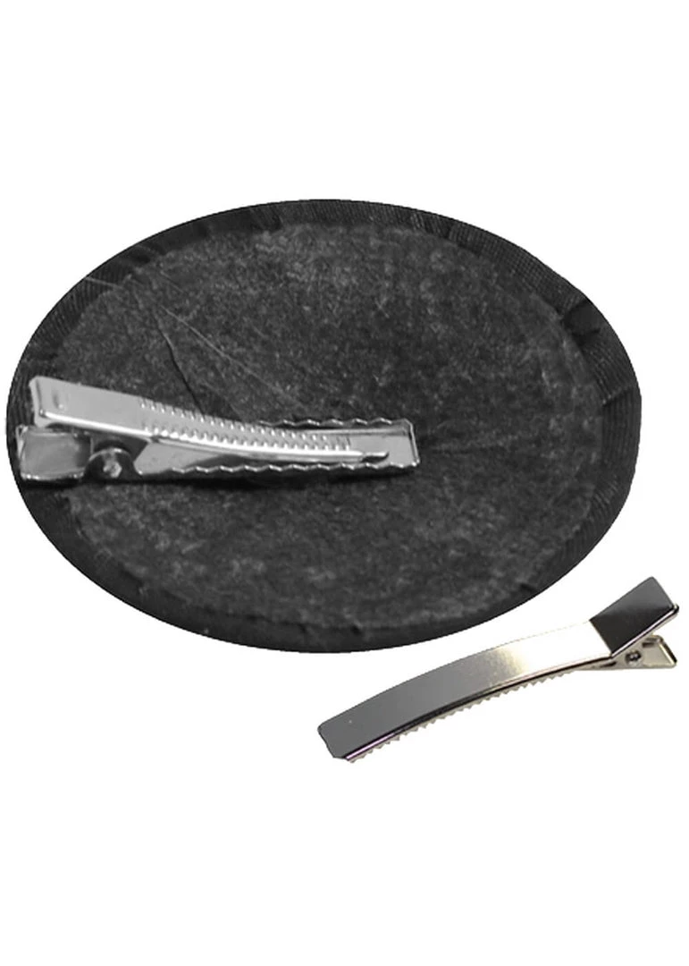You can’t resist turning your head again and again, just to show off this lovely cheesy scenery of a flamingo-skeletton, complete with flowers and feathers on a textile-coated fascinator. It’s bent, so it fits your head well, and thanks to the 2 alligator-clips it stays in place nicely. This stunning fascinator is handmade in Germany.