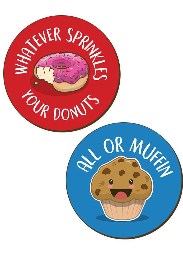 This optimistic set consists of 4 coasters, each of them with a cheerful message. Their back is covered in cork and the front is matte.