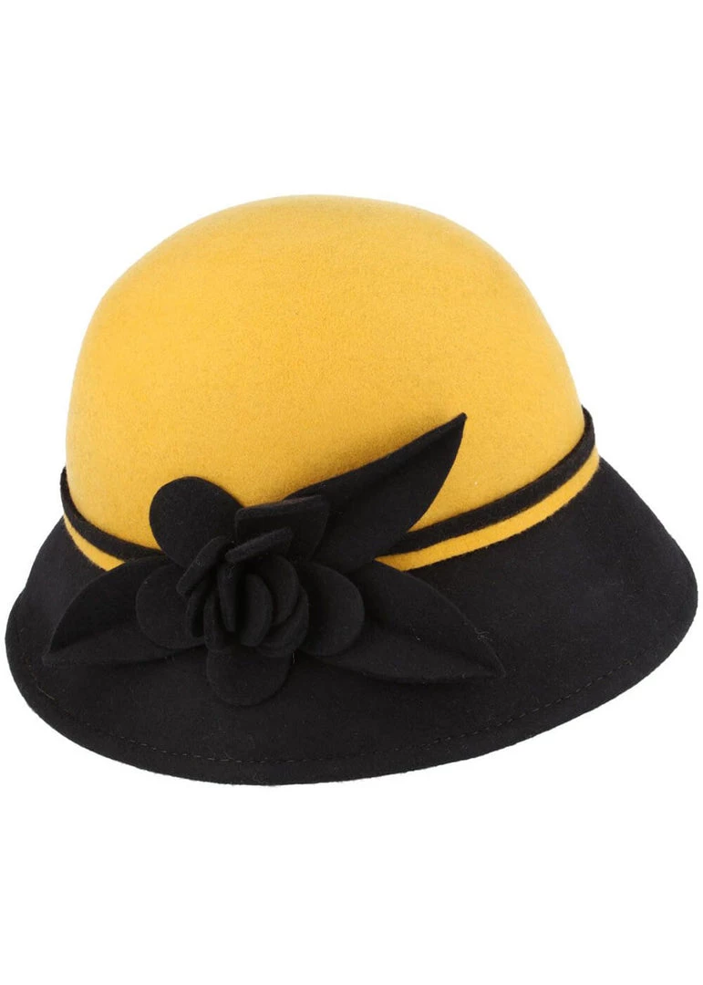 Her 100% wool make her lovely warm and keep her shape nicely, including the playful flower on the side! The cloche shape has a short brim that is just a bit longer underneath the flower, for an extra cozy look.